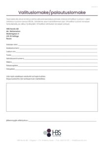 HBS Nordic Valituslomake/palautuslomake