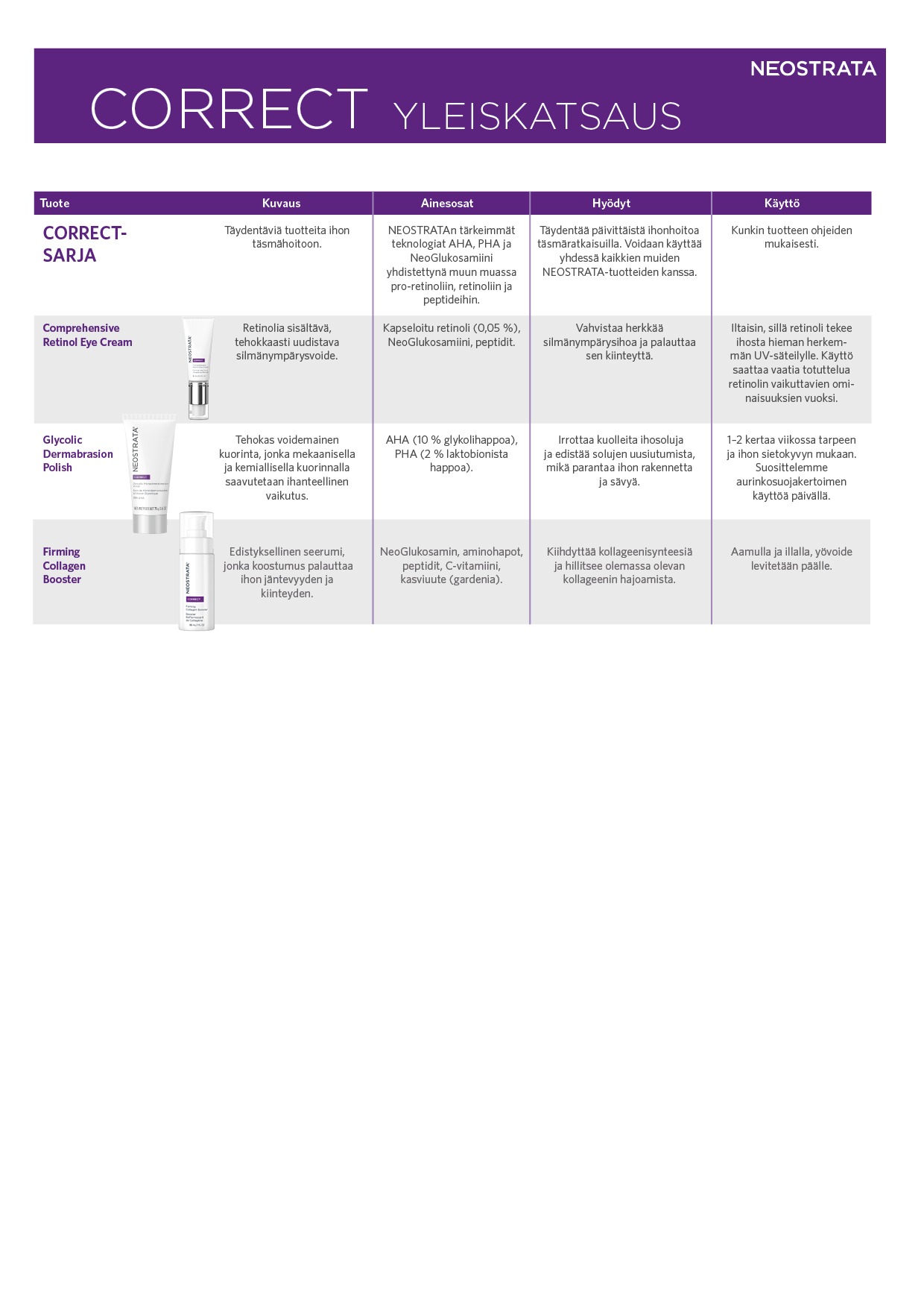 Yleiskatsaus NEOSTRATA Correct-sarja